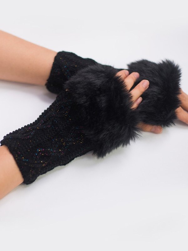 Fingerlose Strickhandschuhe mit Kunstpelzbesatz
