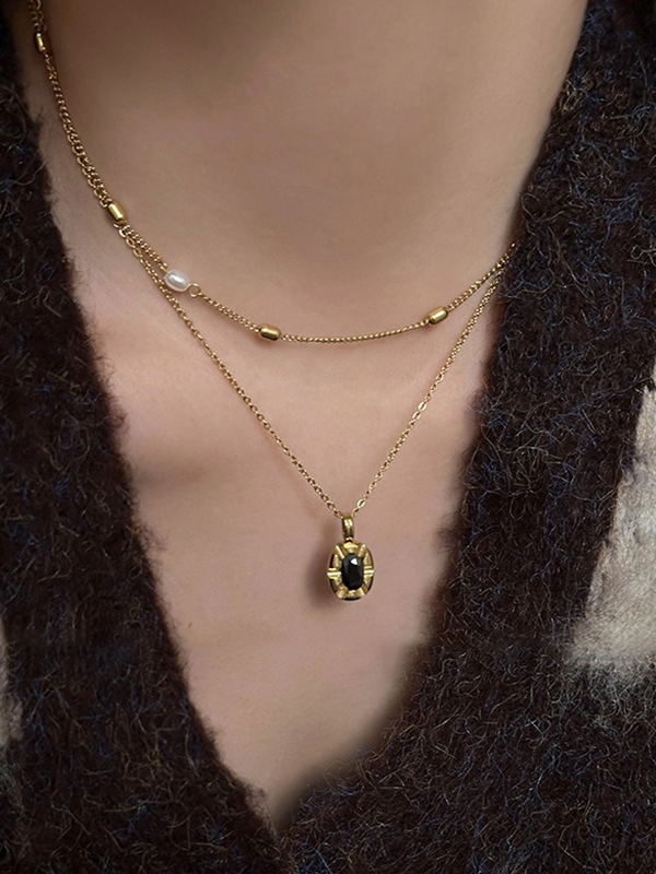 Halskette mit gestapelten Perlen und schwarzem Zirkon-Anhänger