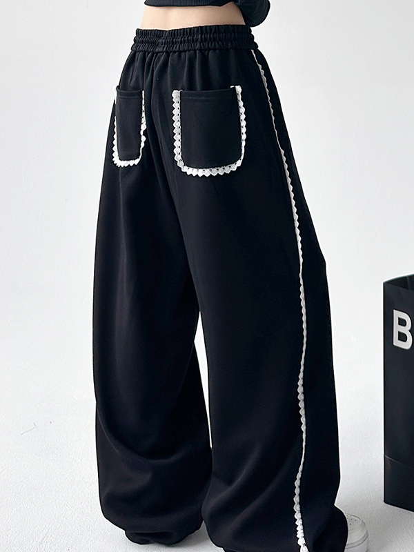 Hose mit weitem Bein und Patchwork-Spitzenbesatz
