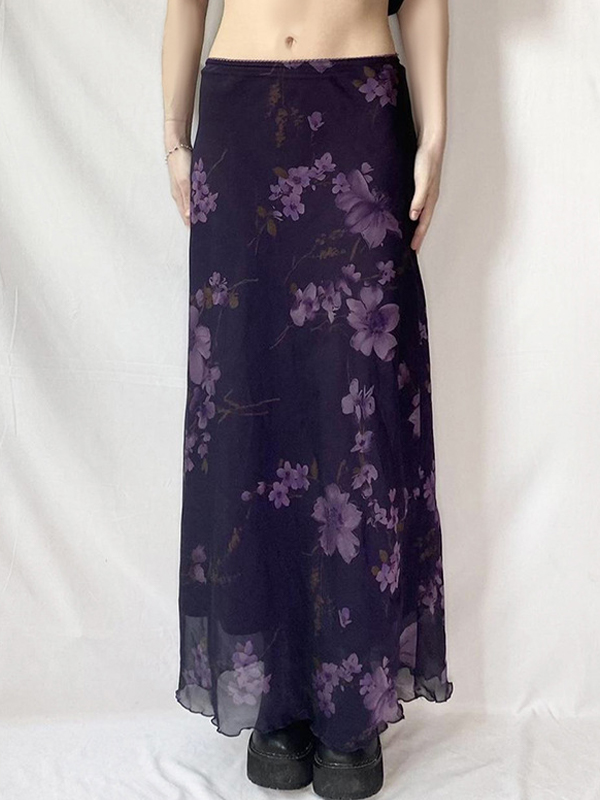 Geheimnisvolle lila Maxiröcke mit botanischem Druck