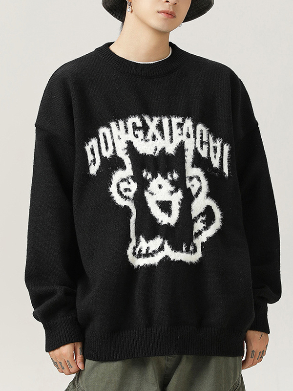 Pullover mit Rundhalsausschnitt und handbemaltem Cartoon-Muster