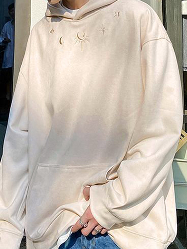 Übergroßer Kapuzenpullover mit Mond- und Sternstickerei aus Wildleder für Herren