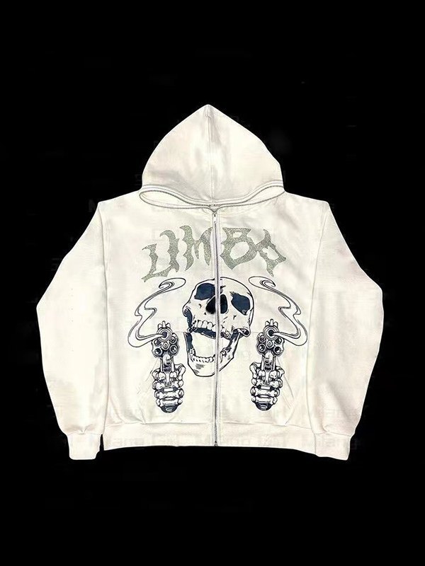 Herren-Hoodie mit Strass-Buchstabe und Totenkopf, schwarz
