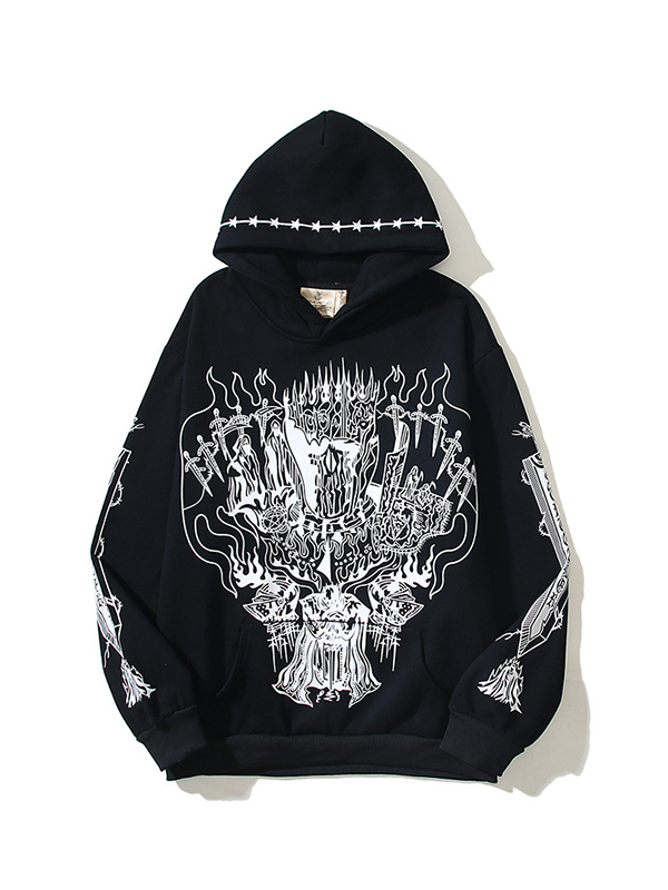 Übergroßer Langarm-Hoodie mit Samt-Print für Herren Street Plus