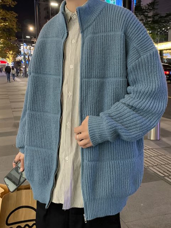 Einfarbiger, gerippter Strickjacke für Herren