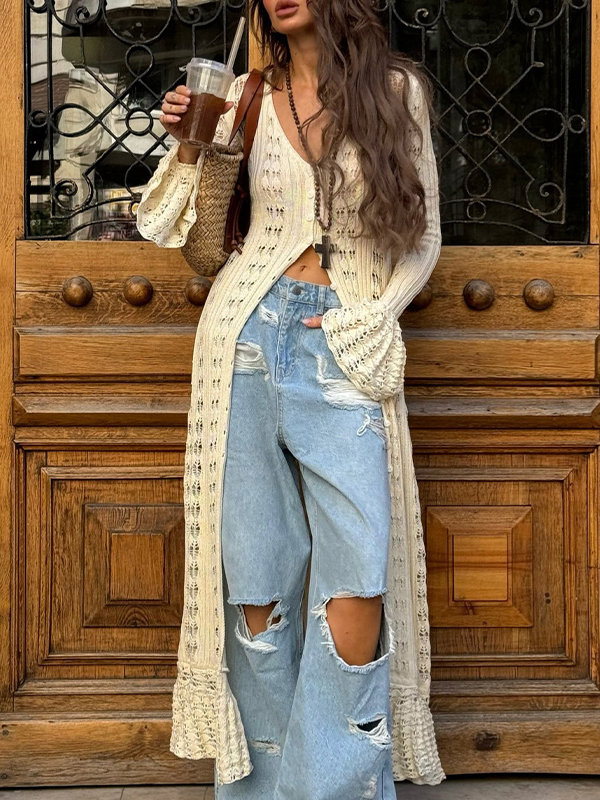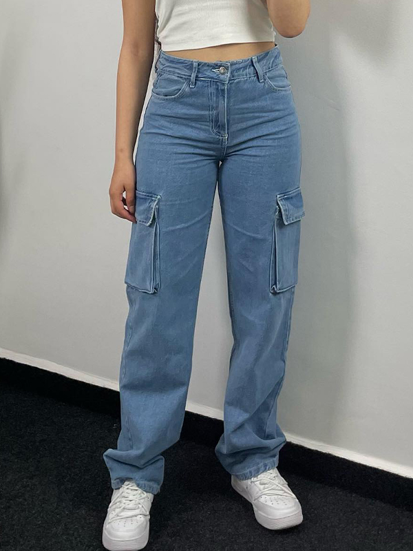 Hellblaue, locker sitzende Cargo-Jeans mit mehreren Taschen