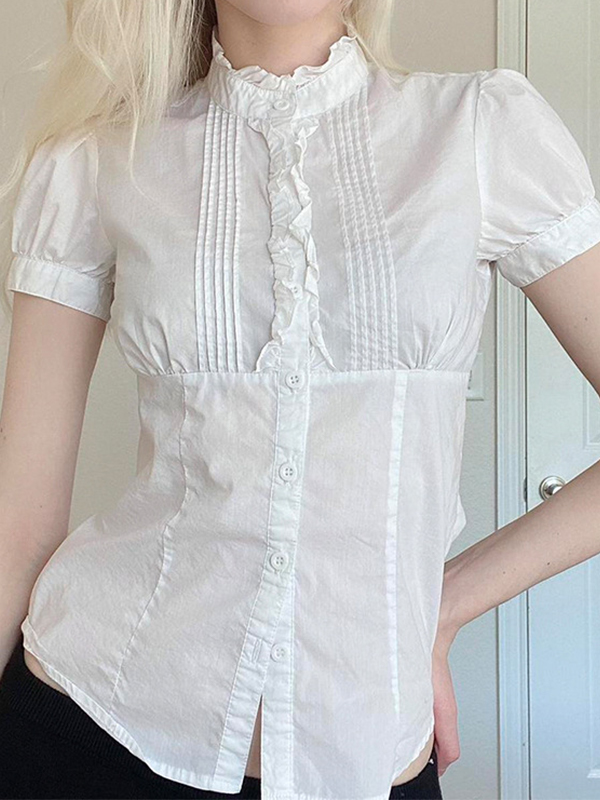 Gerüschte Vokuhila-Kurzarmhemden