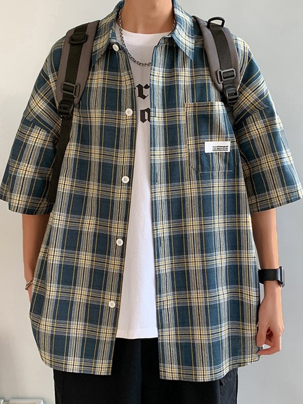 Kurzärmliges, kariertes Hemd mit Taschen für Herren