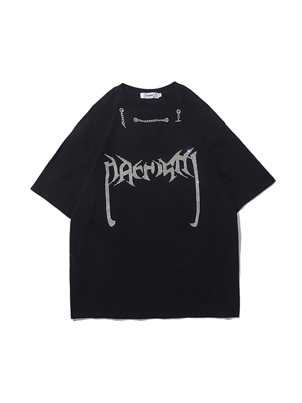 Herren-T-Shirt mit dunklem Print und verwaschenem Oversize-Kurzarm