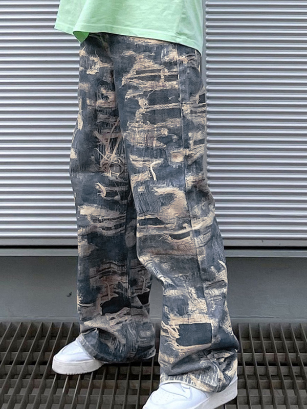Lose Herrenjeans mit Distressed Ripped Pattern Print