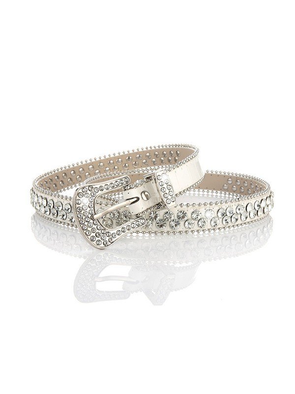 Gürtel mit doppelter Strass-PU-Lederschnalle
