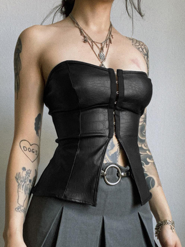 Punky Bandeau-Top mit Knopfverschluss vorne