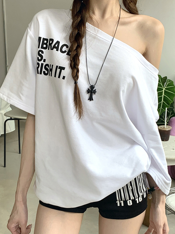 Übergroßes T-Shirt mit kurzen Ärmeln und One-Shoulder-T-Shirt