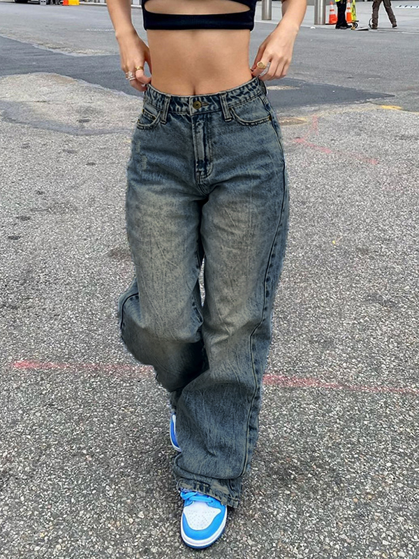 Boyfriend-Jeans mit geradem Bein in einfacher Waschung