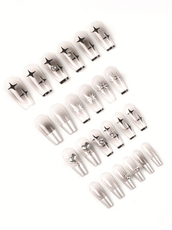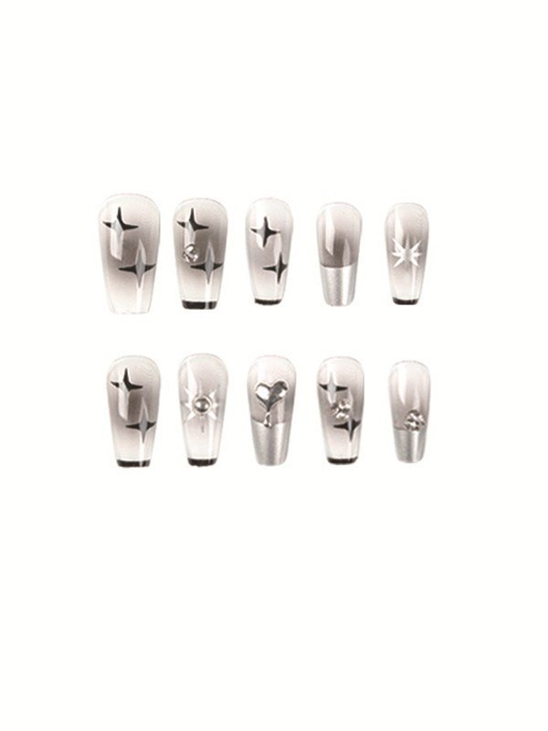 Design: Mit 12 inklusiven Größen für ein Set und hat einen künstlichen Nagelkleber, Strass- und Herzdekore darauf.