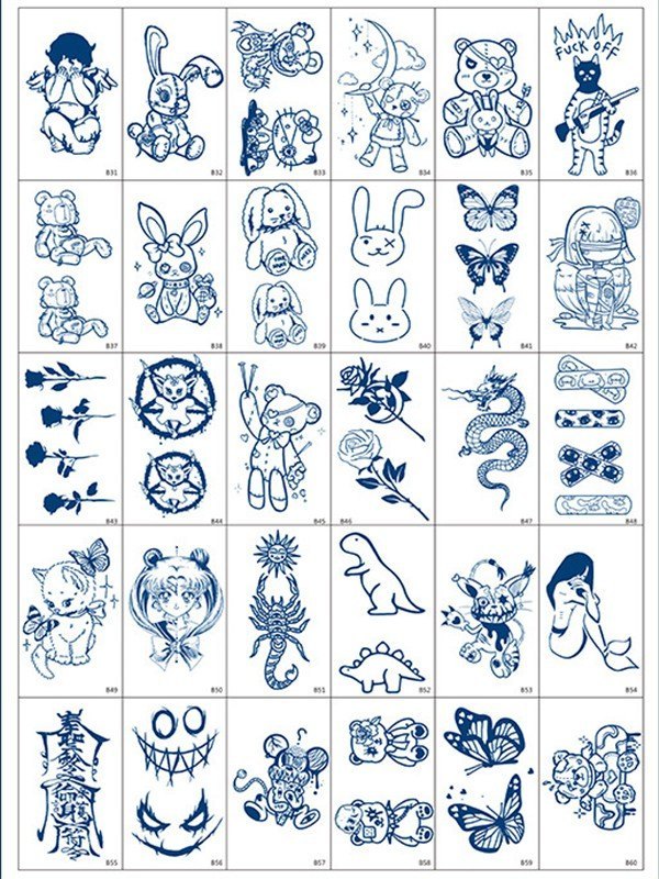 30 Blatt Tattoo-Aufkleber mit Cartoon-Tiermuster