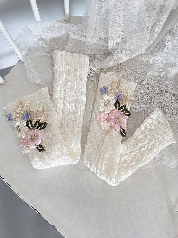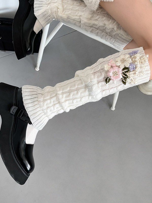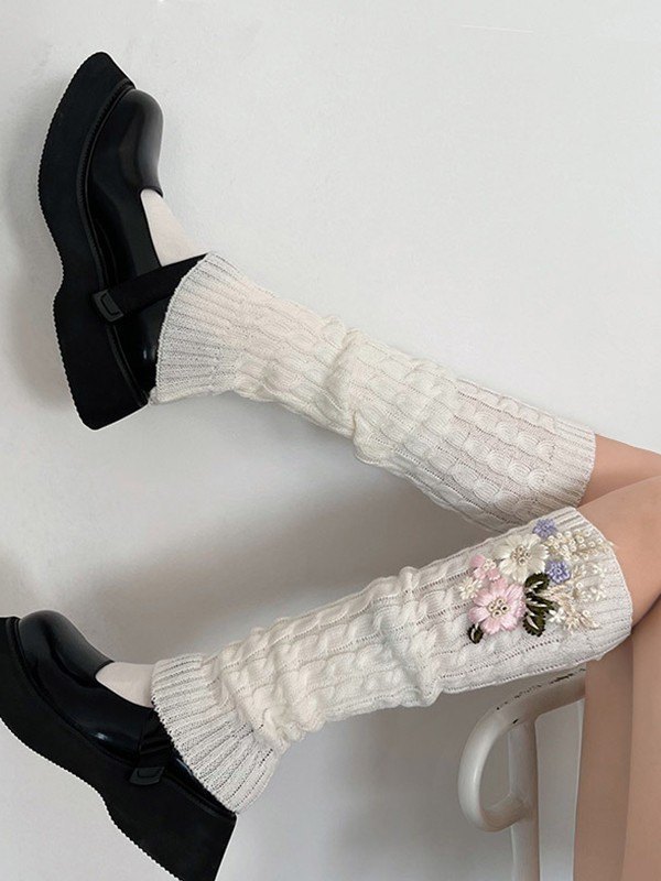Beinwärmer mit Zopfmuster und Blumenstickerei