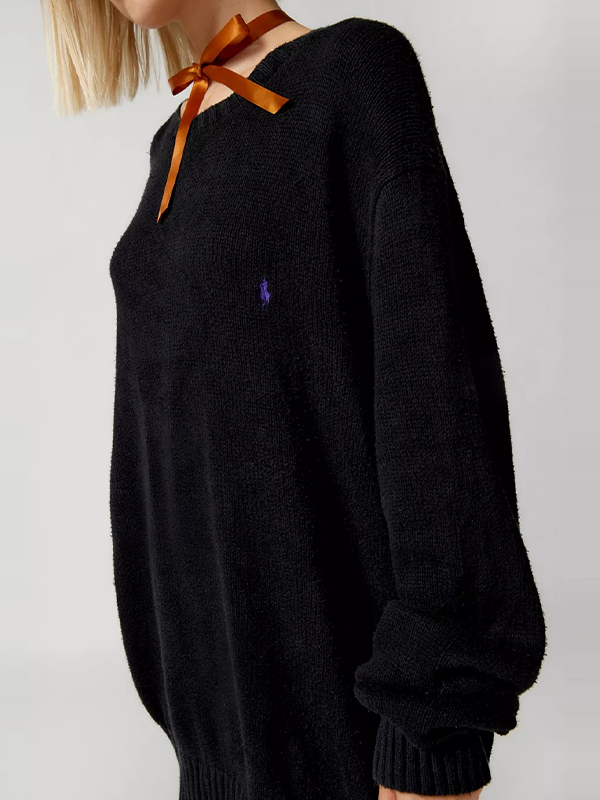 Bestickte, lockere Strickpullover mit langen Ärmeln