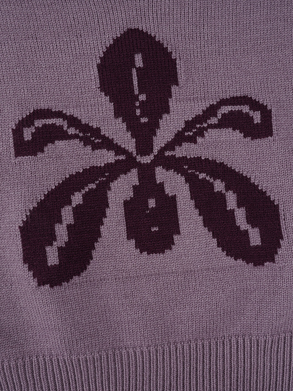 Blumen-Vintage-Strickpullover mit Rundhalsausschnitt