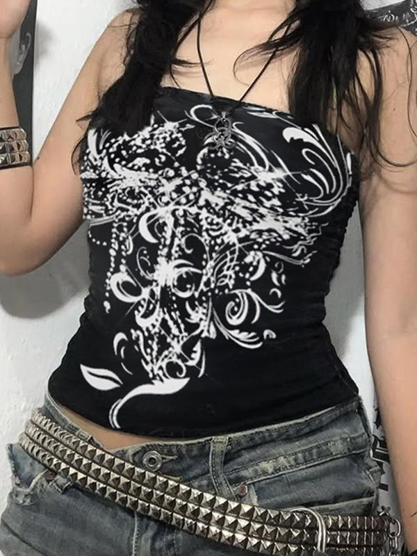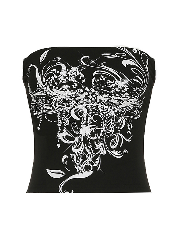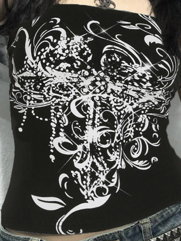 Bralette-Bandeau-Oberteil mit Diablo-Print