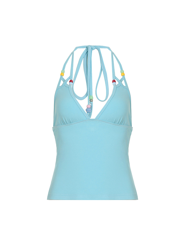 Bunte Neckholder-Weste mit Perlen und V-Ausschnitt