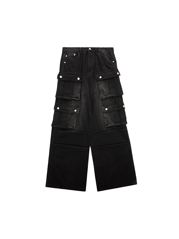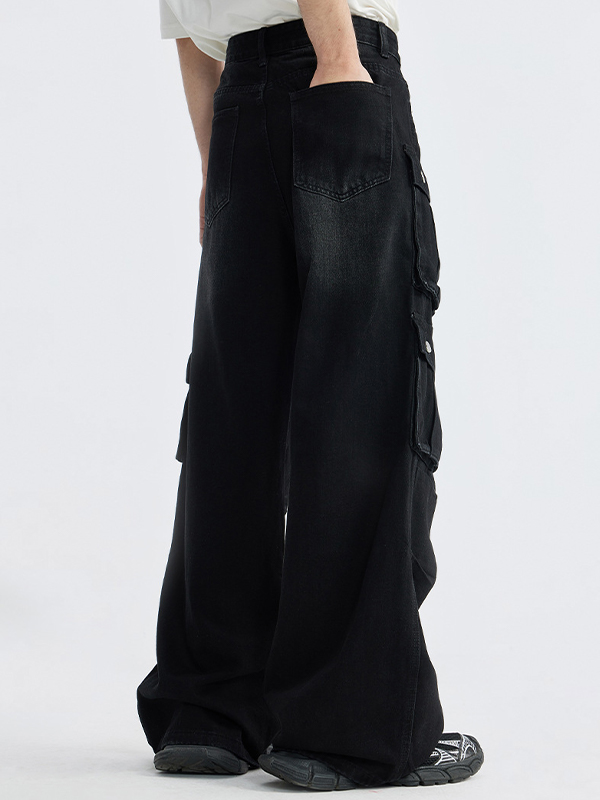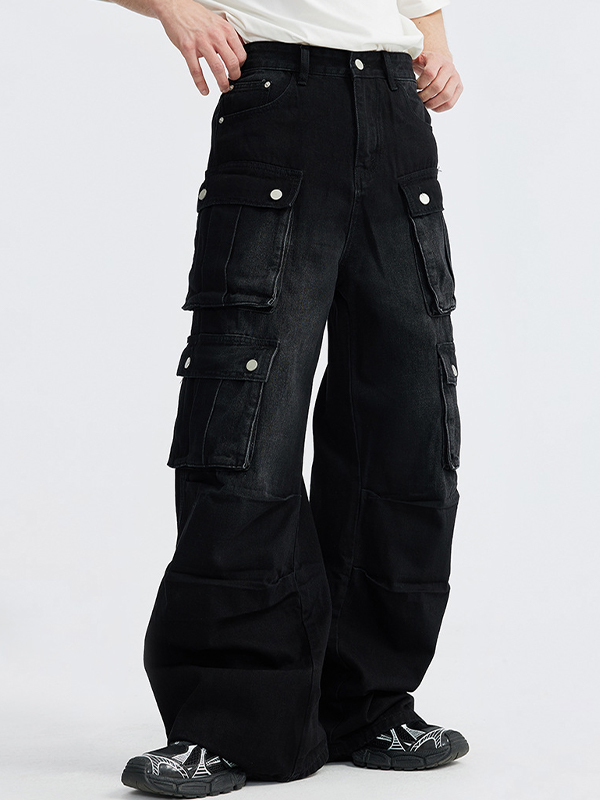 Cargo-Jeans im Retro-Look mit mehreren Taschen und Used-Look