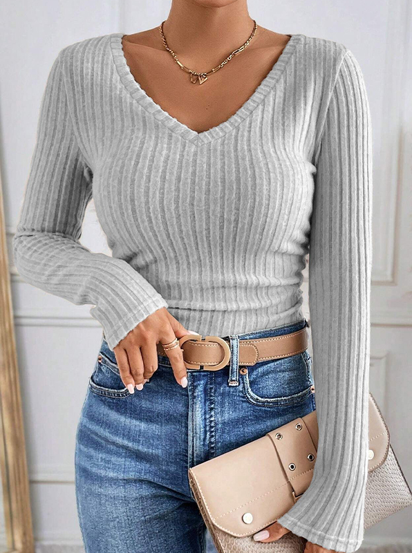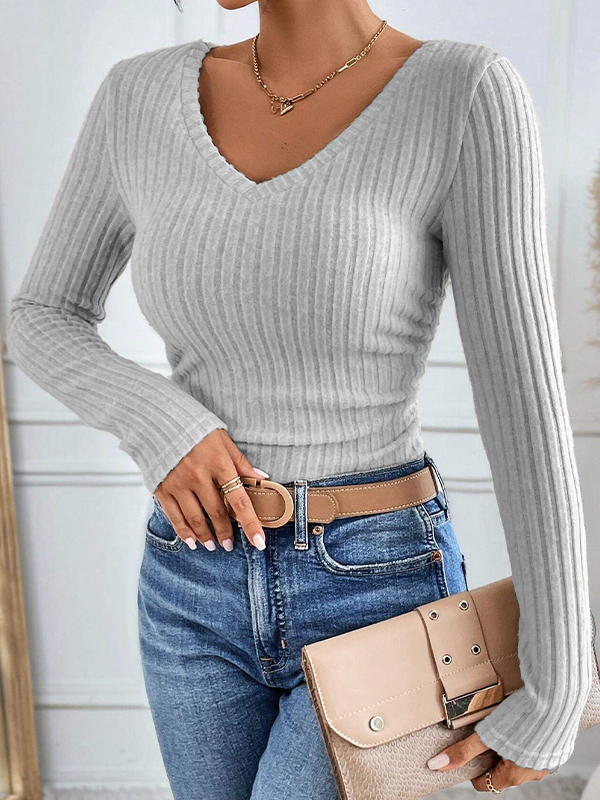 Einfarbige Langarm-Strickwaren