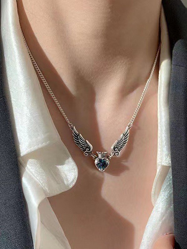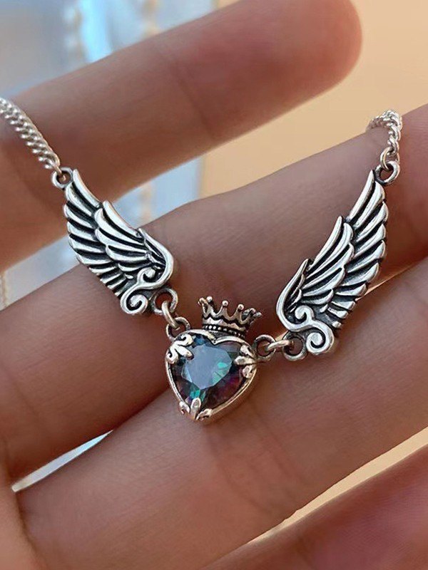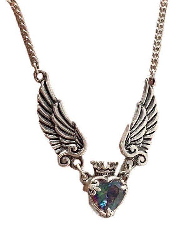 Geflügelte Zirkon-Herz-Anhänger-Halskette