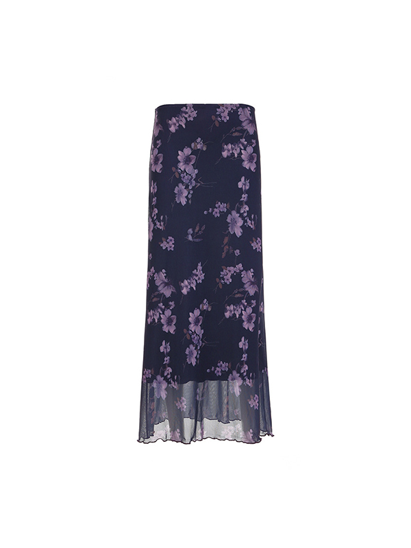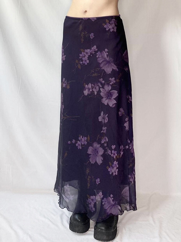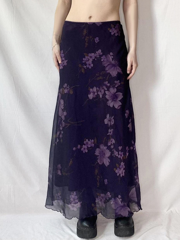 Geheimnisvolle lila Maxiröcke mit botanischem Druck