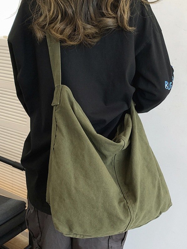 Gewaschene große Canvas-Umhängetasche
