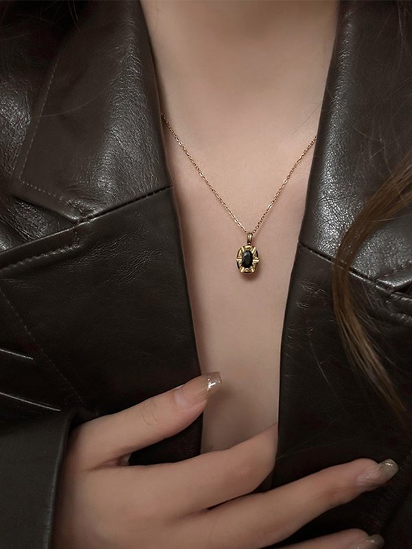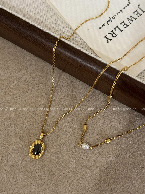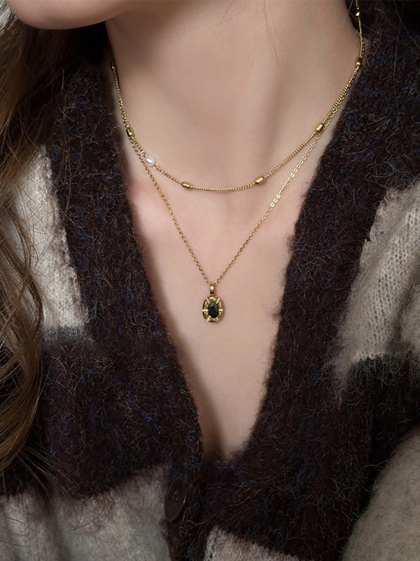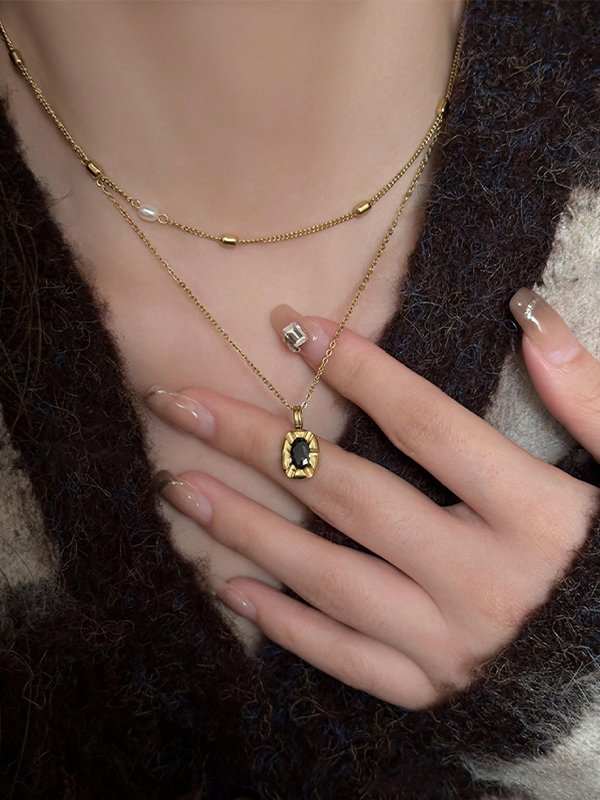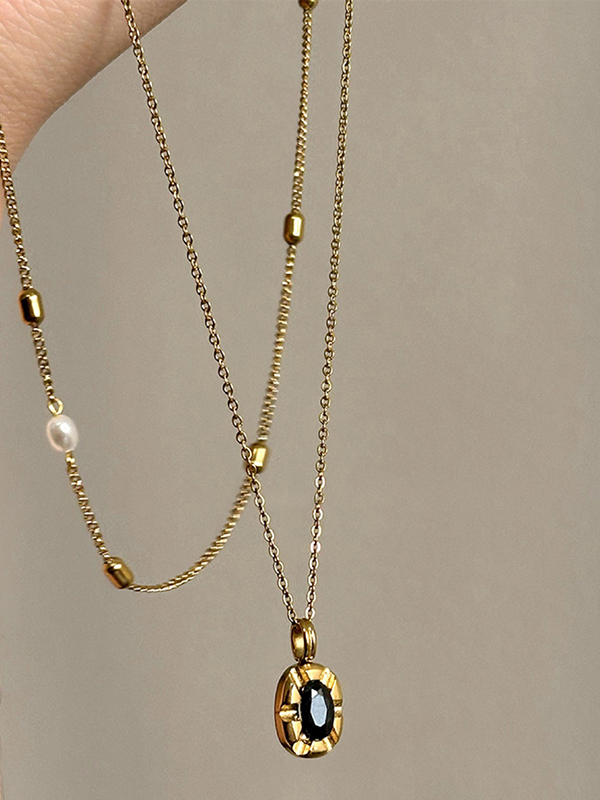 Halskette mit gestapelten Perlen und schwarzem Zirkon-Anhänger