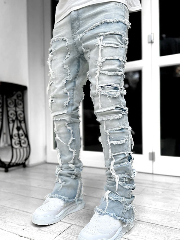 Einzigartiges Design: Das hellblaue Waschdesign verleiht dieser Jeans einen frischen und frischen Look moderner Look, perfekt für alle, die sich gerne von der Masse abheben. Das rohe Besatzdesign verleiht einen Hauch von Street- und Hip-Pop-Stil und macht diese Jeans zu einem Muss für modebewusste Menschen.