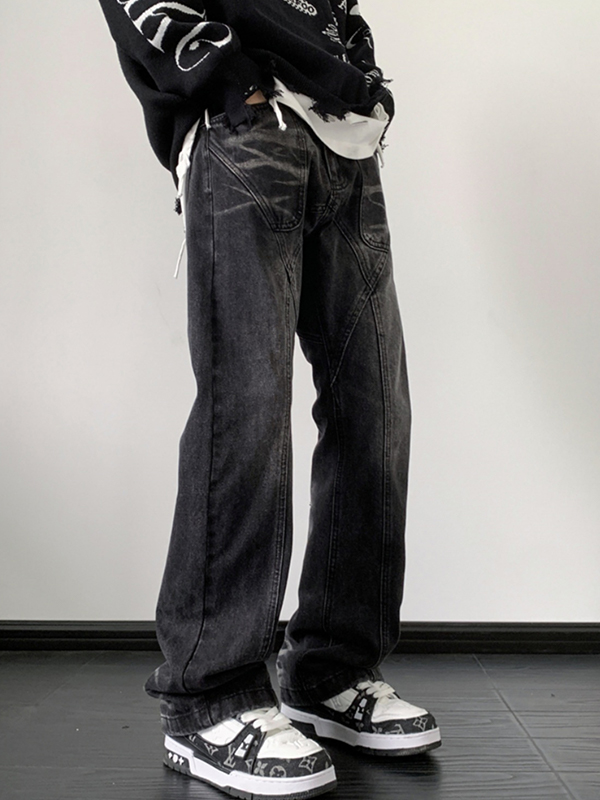 Herren-Jeans mit Vintage-Waschung und Splice-Motiv
