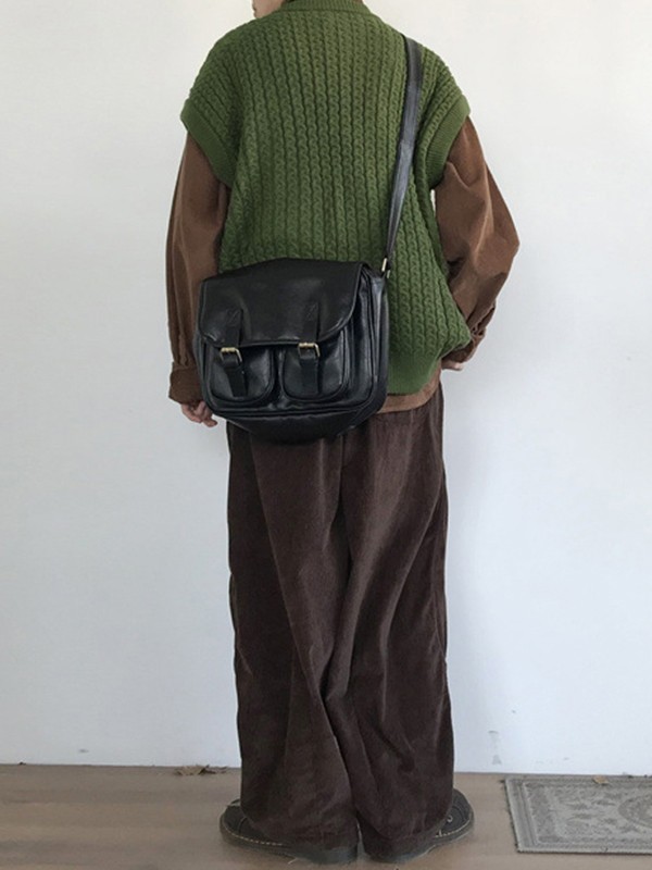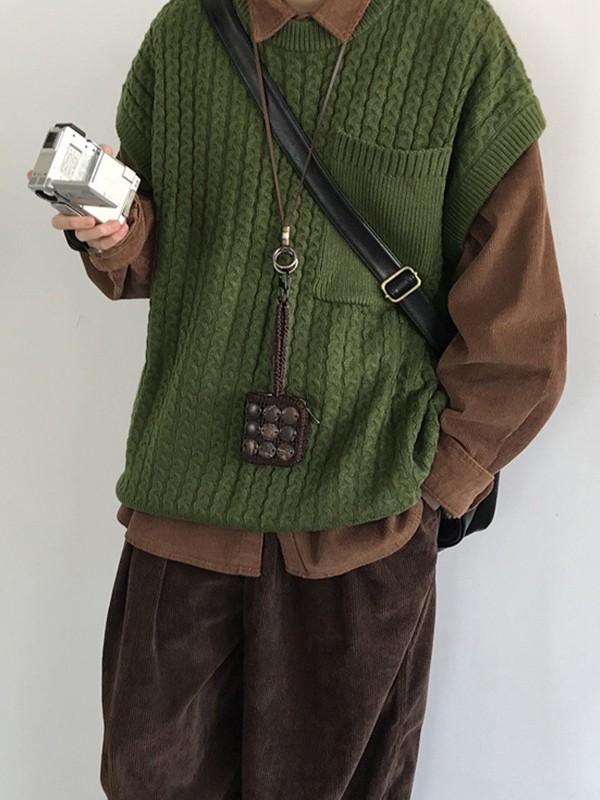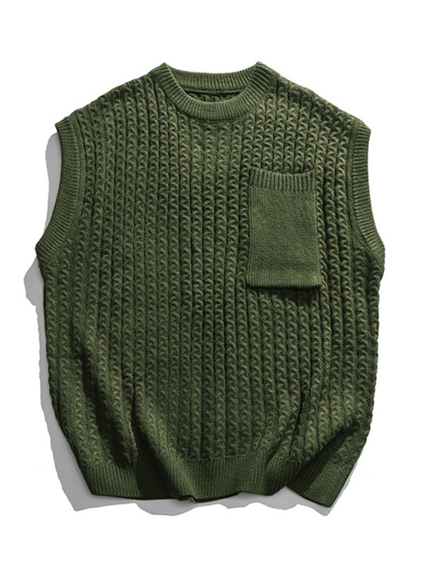 Herren-Strickweste mit Zopfmuster und Tasche vorne