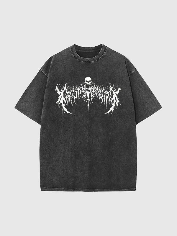 Herren-T-Shirt mit dunklem Print und verwaschenem Oversize-Kurzarm