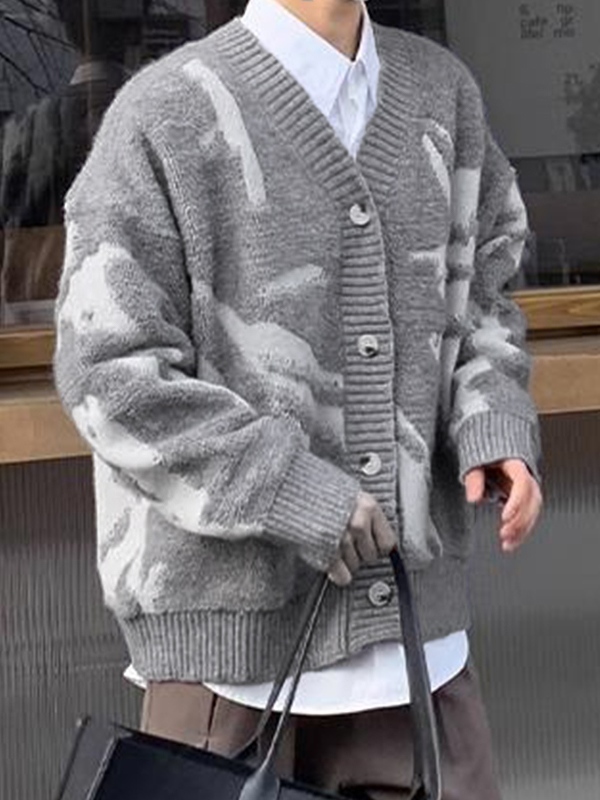 Einzigartiges Design: Der Pullover verfügt über ein unregelmäßiges Flock-Jacquard-Design, das stilvoll und einzigartig ist. Dieses Detail unterscheidet ihn von einer typischen Strickjacke und verleiht ihm einen Hauch von Raffinesse.