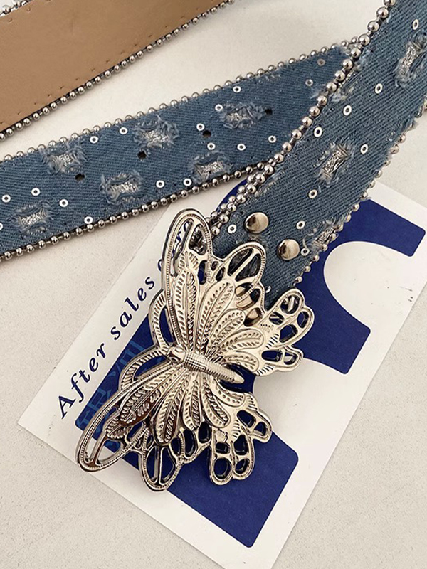 Jeansgürtel mit Schmetterlingsschnalle und Paillettenverzierung
