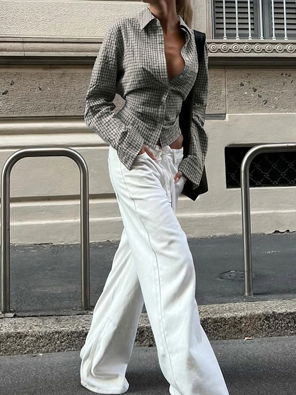 Schreibe die erste Bewertung für „Kariertes Hemd mit umgeschlagenem V-Ausschnitt und langen Ärmeln“
