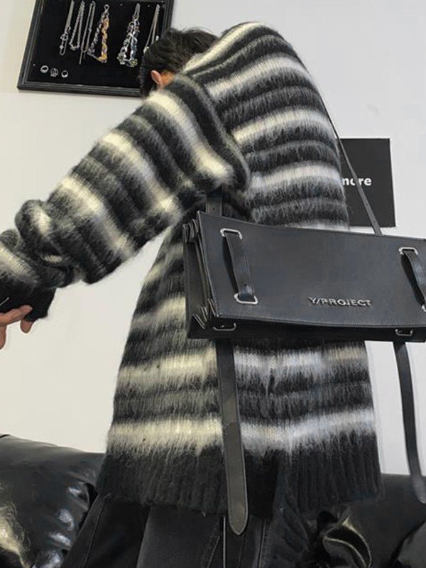 Kontrastgestreifter Fuzzy-Strickpullover für Herren