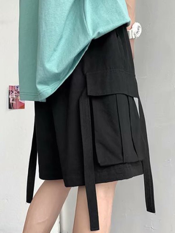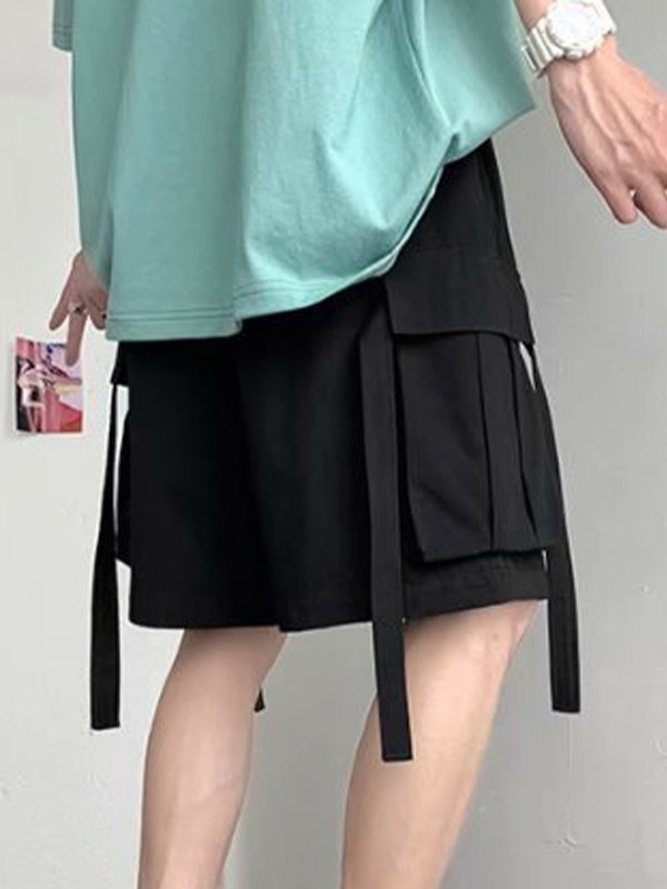 Beschreibung: Mit elastischem Taillenbund mit Kordelzug, Cargo-Beintaschen mit verlängerten Beinen Riemen darauf und hat ein Label-Panel-Design.