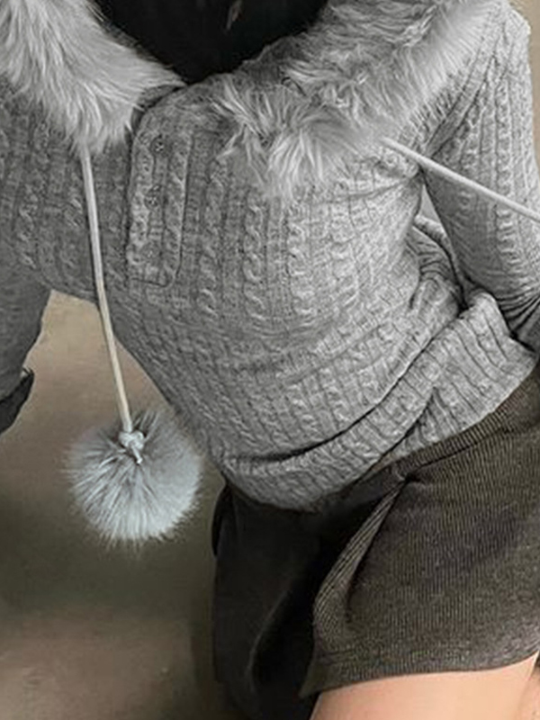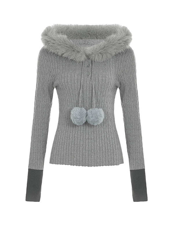 Langärmliger Strick mit Kapuze und Raw Edge in Kontrastfarbe