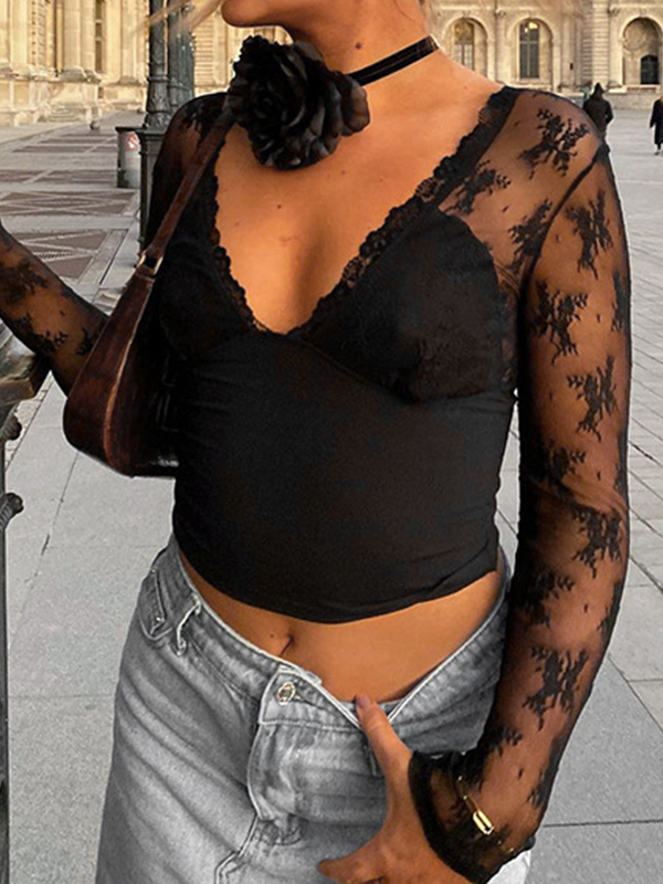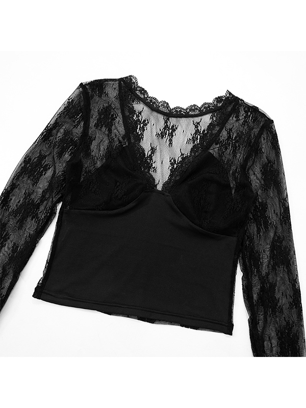 Langärmliges Spitzen-T-Shirt