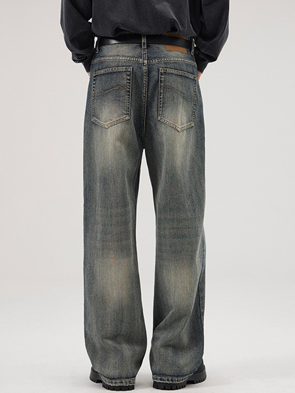 Lockere Jeans im American Retro Heavy Industry-Stil mit gewaschenem Bambusmuster