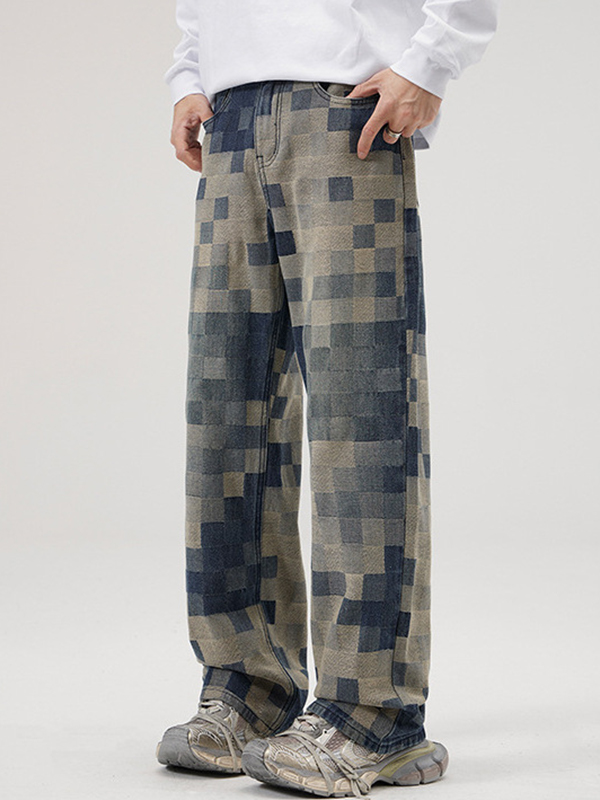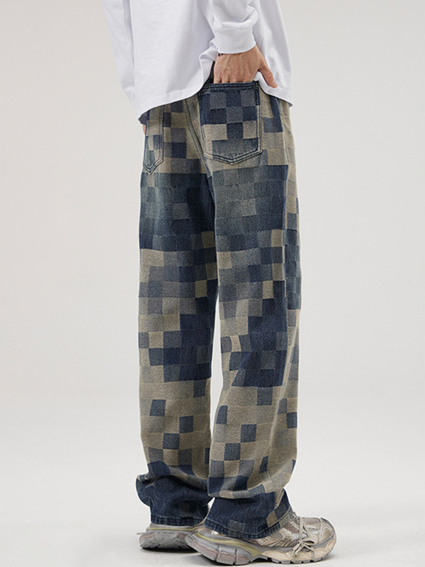 Lockere Jeans mit Mosaik-Schachkartengitter