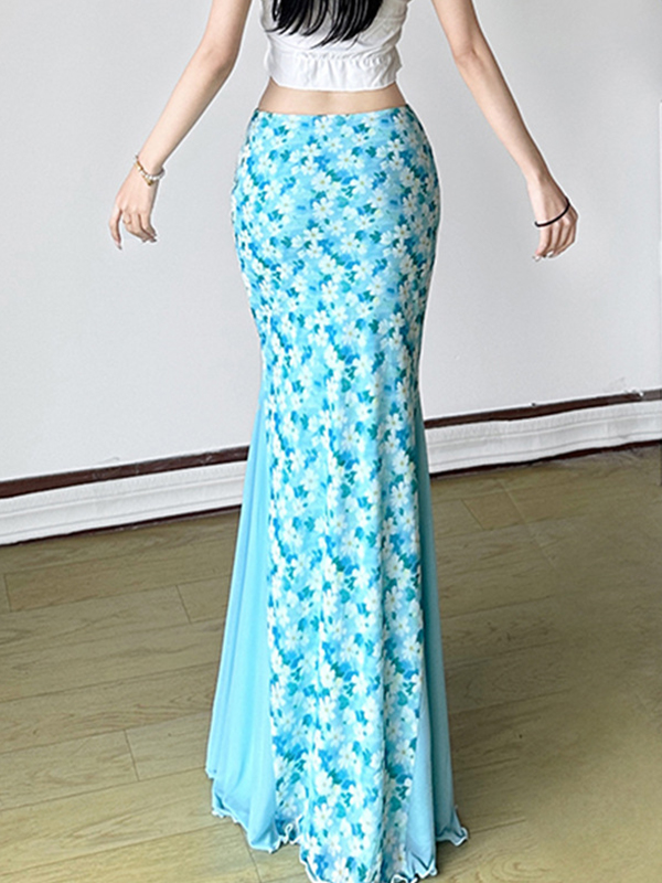 Maxirock mit frischem Blumenmuster und gerolltem Saum