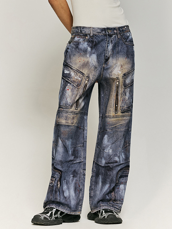 Mehrteilige Jeans mit großem Reißverschluss und Print