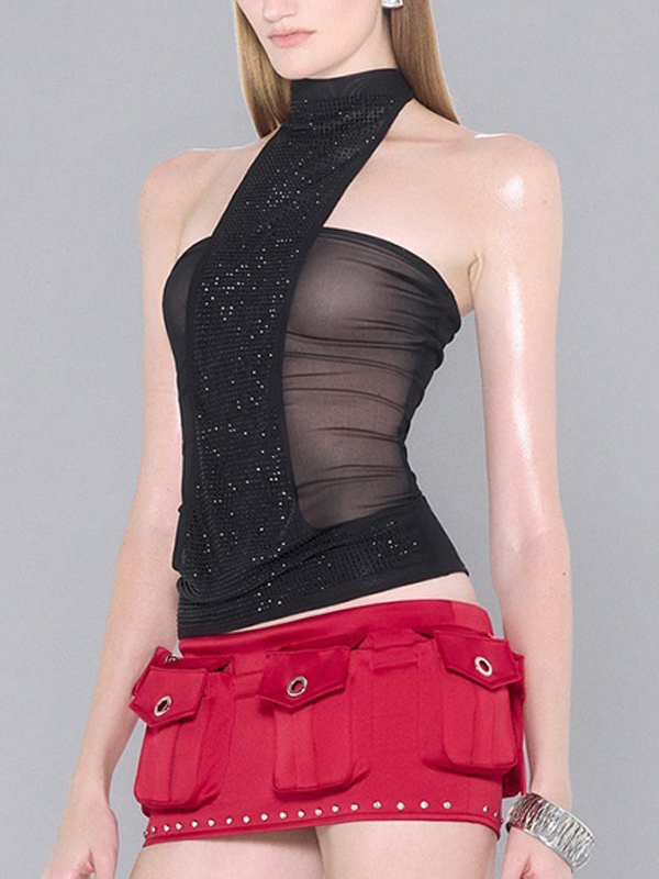 Paillettenschal Hot Girl Strass Cami Top