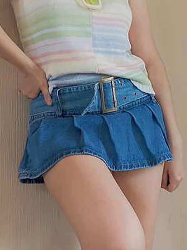 Schreibe die erste Bewertung für „Plissierter Denim-Mikro-Skort mit niedriger Leibhöhe“