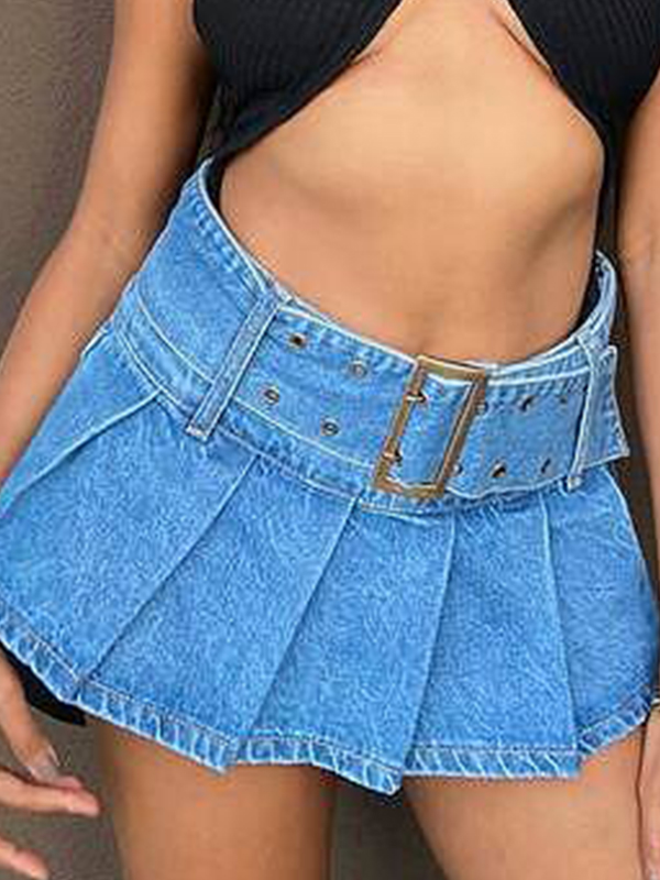 Plissierter Denim-Mikro-Skort mit niedriger Leibhöhe
