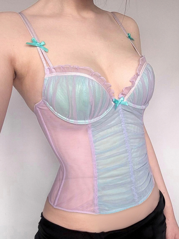 Schreibe die erste Bewertung für „Pure Lust – Camisole-Oberteil aus Netzstoff mit Patchwork-Muster und Farbblockdesign“